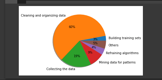 df = pd.DataFrame({'lable':['Building training sets', 'Cleaning and organizing data','Collecting the data', 'Mining data for patterns', 'Refraining algorithms', 'Others'],